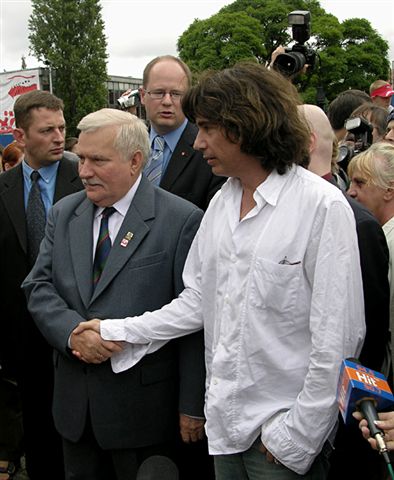 rękę Lechowi Wałęsie,– Prezydentowi naszego kraju (gdy trzym druga rękę